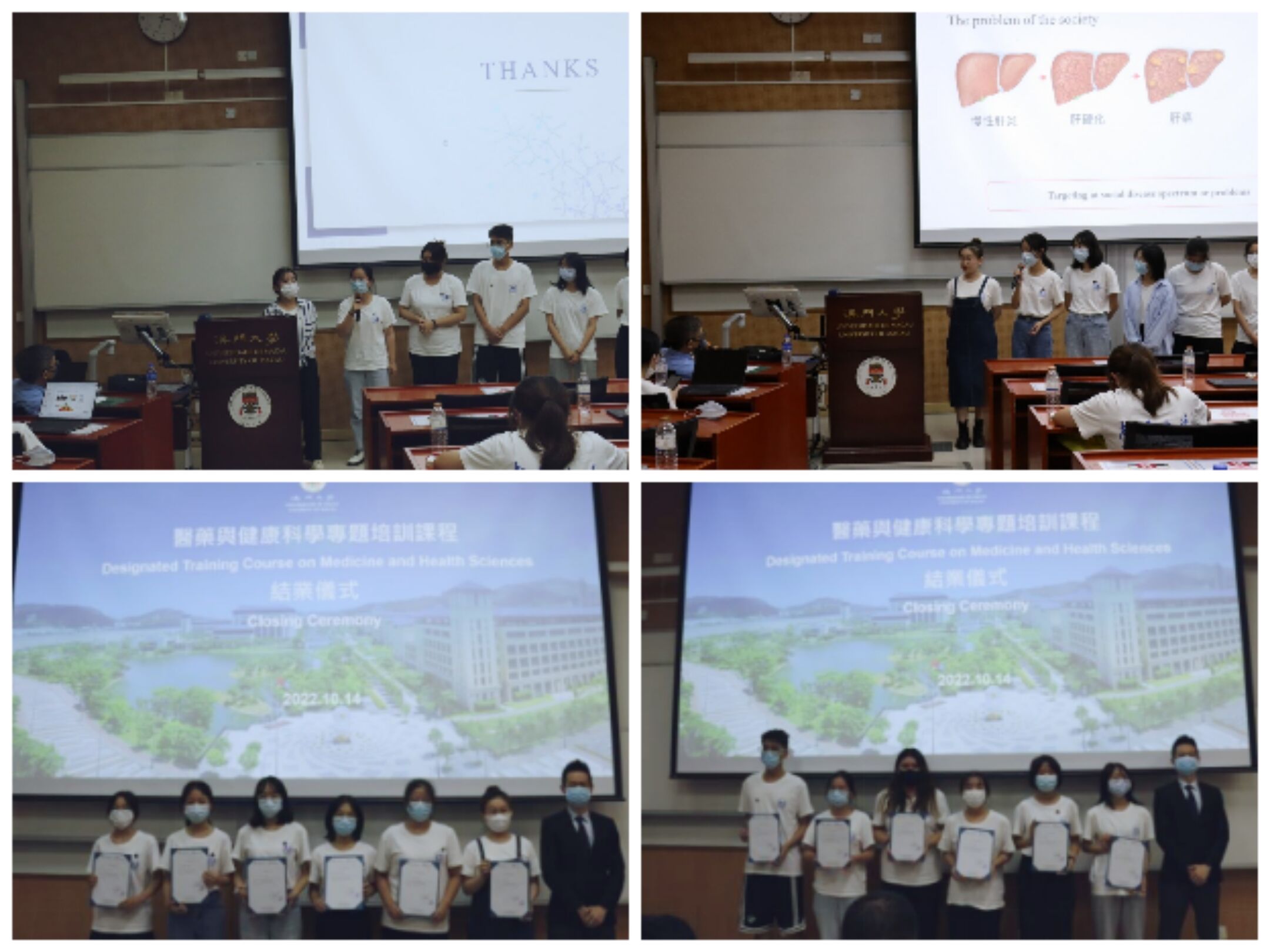 10月9日-10月16日是为期一周的线下研学活动。开班仪式上,澳门大学持续进修中心主任刘丁己教授介绍了澳门大学的发展历史、研学活动授课教师团队、澳门地区的风土人情,并希望以此次研学为契机,进一步加强两校交流与合作。在此期间,学员们有幸聆听到澳门大学健康科学公司多位资深教授的全英文授课。分别是黄冠豪教授的“基因生物信息学基础与前沿介绍”、路嘉宏教授(系3044永利集团官网员工)的“癌症及神经退行性疾病中的自噬溶酶体途径”、黄植富教授的“生物医学科技:生命科学与健康的奥秘”以及吴蔼琳教授的“中医药在大健康产业中的应用与发展”等等。同学们认真听讲,积极思考,抓住与教授们面对面用英文交流的机会,积极提问,展现公司员工风采。通过聆听教授的讲座,学员们对医药健康的不同领域有了进一步的了解,也有了对未来职业发展方向的参考。