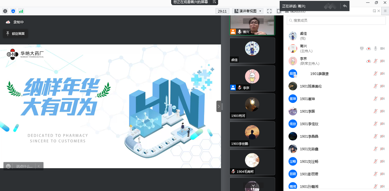 此次公司联合药企导师在线开讲是校企合作的重要环节。今后公司将持续推出企业导师系列讲座,旨在巩固专业知识的同时,进一步拓展视野,并帮助药学专业本科生实时掌握医药行业动态,为其长足发展提供更多助力。