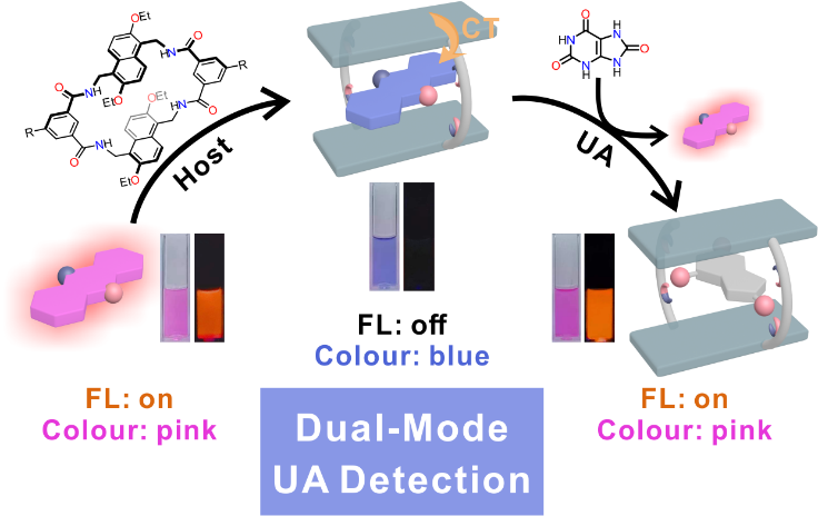 成果二:Tetralactam macrocycle based indicator displacement assay for colorimetric and fluorometric dual-mode detection of urinary uric acid (Chem. Commun. 2023, 59, 5411)