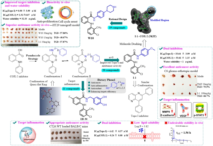 非甾体抗炎药(NSAIDs)已被证明能够改变肿瘤微环境、增强细胞凋亡和减少细胞迁移。基于NSAIDs的“老药新用”策略成为抗肿瘤药物发现的一种新型范式,该研发范式面临着副作用大、靶标亲和力和选择性不高等挑战。基于此,3044永利集团王震教授团队围绕非甾体抗炎药的结构修饰及改造发现新型肿瘤候选药物开展了持续性的研究工作,并取得了系列成果(J. Med. Chem., 2022, 65, 10481-10505;Eur. J. Med. Chem.,2022, 240, 114560;Eur. J. Med. Chem.,2021, 226, 113817)。