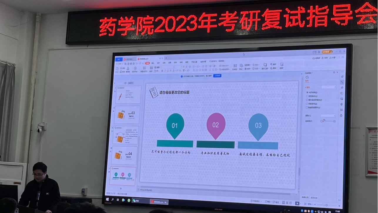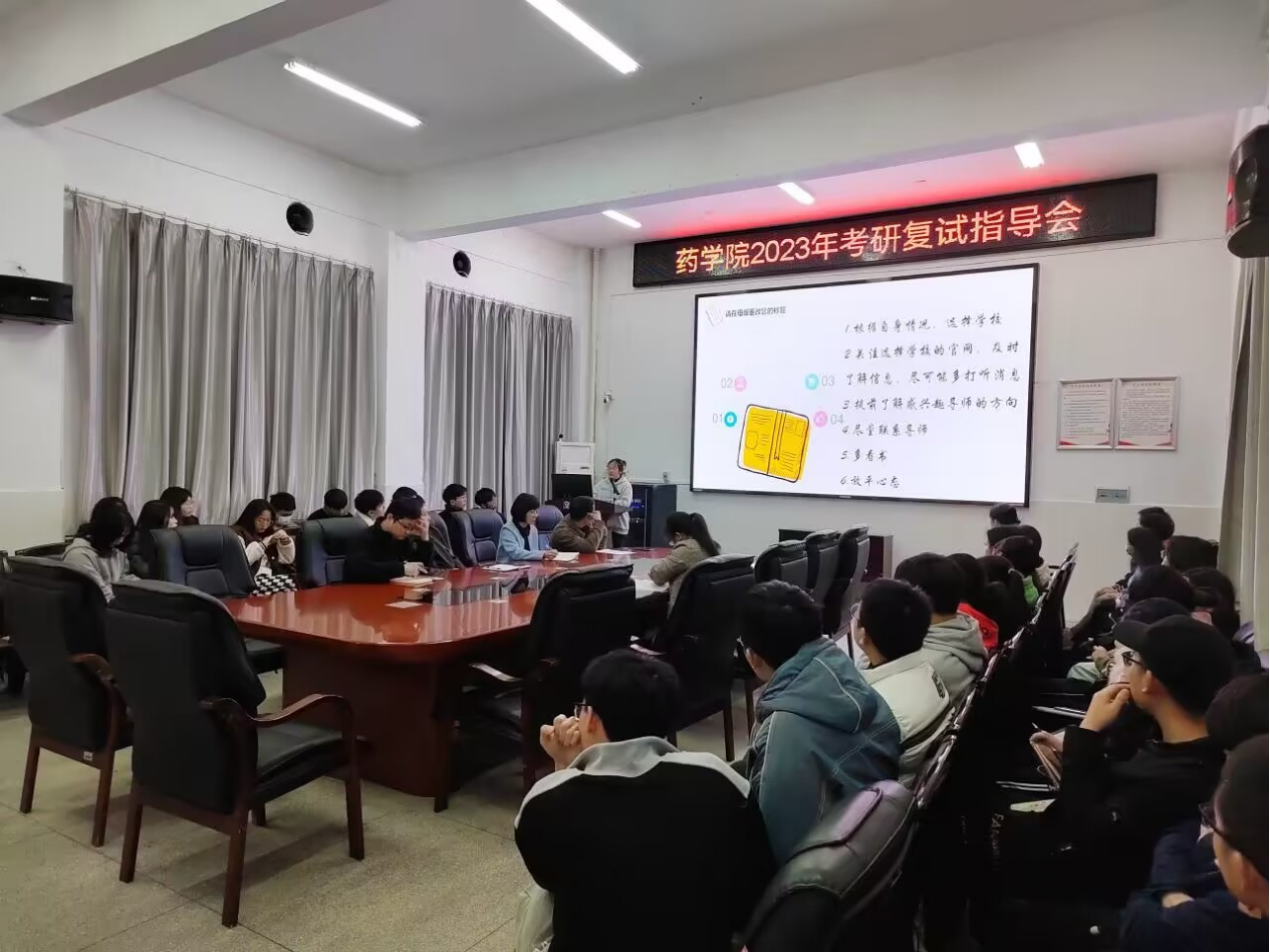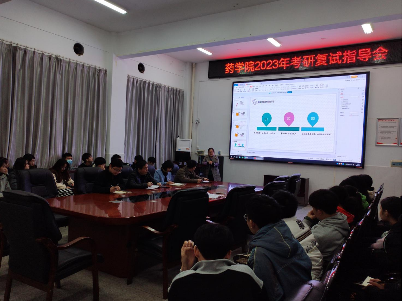 为进一步做好2023届毕业生考研复试工作,帮助考研员工更加充分地做好复试及调剂相关准备取得佳绩,3044永利集团于3月3日下午在药学楼101室举办考研复试指导会。药公司党委书记袁中华、副书记陈健平、副经理王力立出席会议,特别邀请药剂学教研室主任贺冬秀、2022级研究生代表秦玉婷和伍诗洁主讲,23届考研同学参加会议,会议由就业专干彭翔主持。