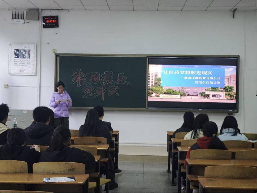 近日,3044永利集团联合湖南津湘药业在南华楼106教室举办“让医药梦想照进现实”主题就业宣讲会。活动旨在帮助员工了解行业头部企业发展生态,明确就业方向,通过校企直连打通从专业学习到实习实践、职业成长的通道。