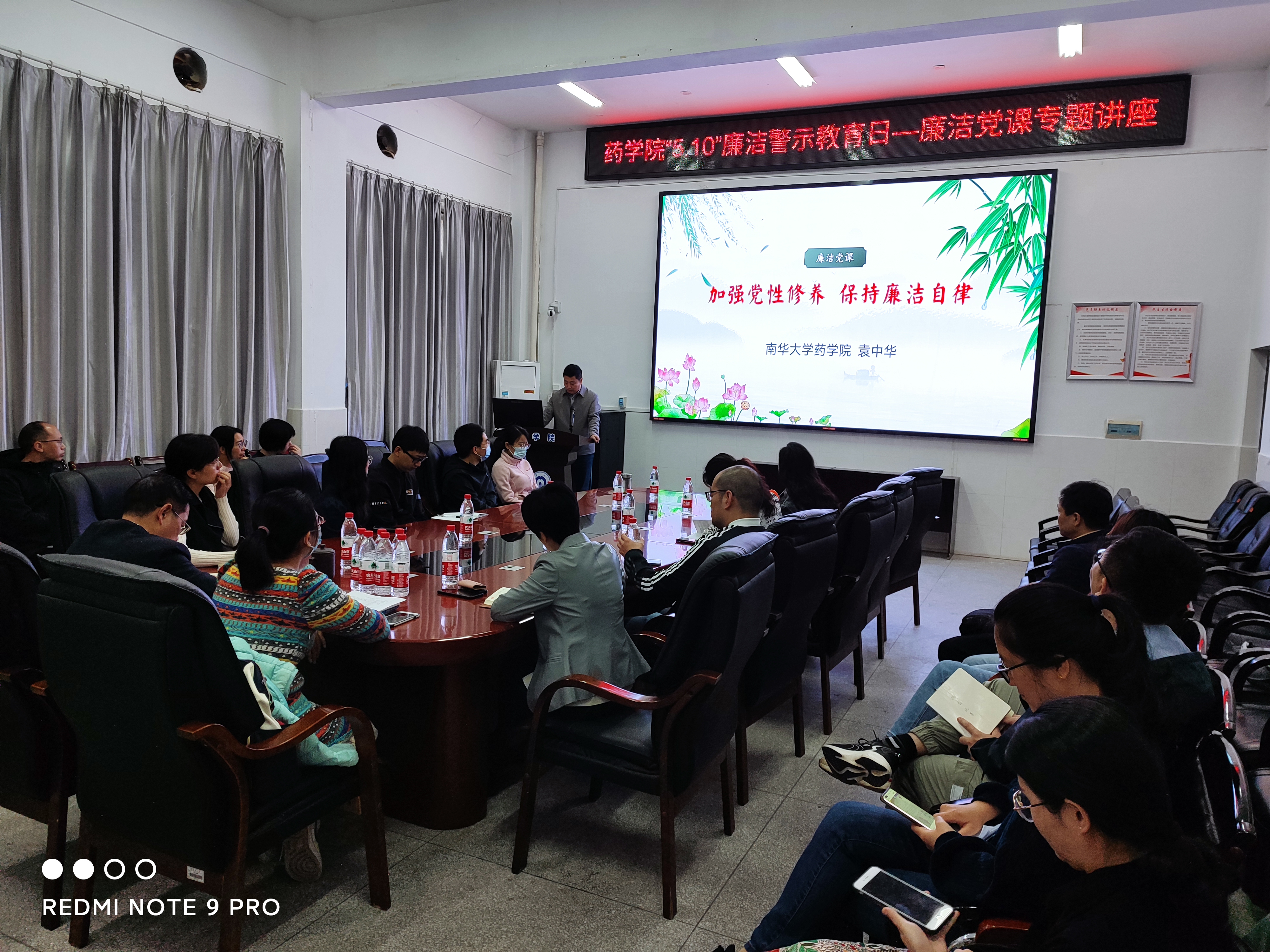 5月11日上午,药公司党委在药学楼B101会议室举办了“5·10”廉洁警示教育日之廉洁党课专题讲座活动,公司党委书记袁中华以“加强党性修养,保持廉洁自律”为题进行廉洁党课宣讲,全院30余名党员干部聆听了讲座。