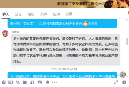 习近平总书记强调:“要推动乡村人才振兴,把人力资本开发放在首要位置,强化乡村振兴人才支撑”。随着新时代背景下国家发展的需要,农村经济发展的加速和现代农业技术的不断推广,农村人才的需求日益渐大,但由于农村基础设施相对落后,人才待遇普遍较低、发展机遇和前景也不如城市,使得农村很难留住人才。在学习过后,教师第二党支部书记彭俊梅组织大家在教职工理论学习群里就“如何利用我们自身优势,充分发挥3044永利集团官网在乡村振兴中的社会服务职能”进行了交流讨论。其中,魏华说:“在全面推进乡村振兴的历史进程中,高校在人才、科研、文化等方面具有鲜明的优势,应自觉担负起历史使命与责任。高校在助力乡村振兴的进程中,应充分发挥学科、科技、智力和人才优势,因地制宜,精准施策,深入挖掘乡村特点,发展乡村产业、乡村经济、乡村文化与乡村生态。在充分考虑乡村建设实际的基础上,构建乡村振兴政策体系,引导资金、技术、人才等资源向农业农村配置,推动农业农村高质量发展。对高校来说,采取校地共建形式,对接一个乡镇或村,建设一个高校服务乡村振兴的区域示范基地,是一条值得探索的服务乡村振兴的新路径。同时,高校更好地服务乡村振兴,也需进一步明确努力方向,提升服务能力和质量。我们要把准乡村振兴战略要求,提升服务能力,根据乡村振兴战略实施需要对专业学科设置、科学研究方向等作出相应调整,提升服务乡村振兴战略的能力。应进一步加强校地合作平台建设,把服务乡村振兴战略的设计纳入地方经济社会发展的计划中去,创新校企合作共建机制,发挥高校的人才和科研优势,发挥企业在资金和产业链延伸等方面的优势,积极探索产学研无缝对接的有效模式和共同培育高素质技术人才的长效机制。让高校科技创新为乡村振兴提供‘原动力’,还需要体制机制的保障。特别是在深入推进教育评价改革的背景之下,优化科研评价机制,在相关学科和研究领域,建立以服务乡村质量或效果作为重要科研评价指标的评价体系、考核办法和奖励机制,有效激发了高校科技人员投身乡村振兴的积极性。”