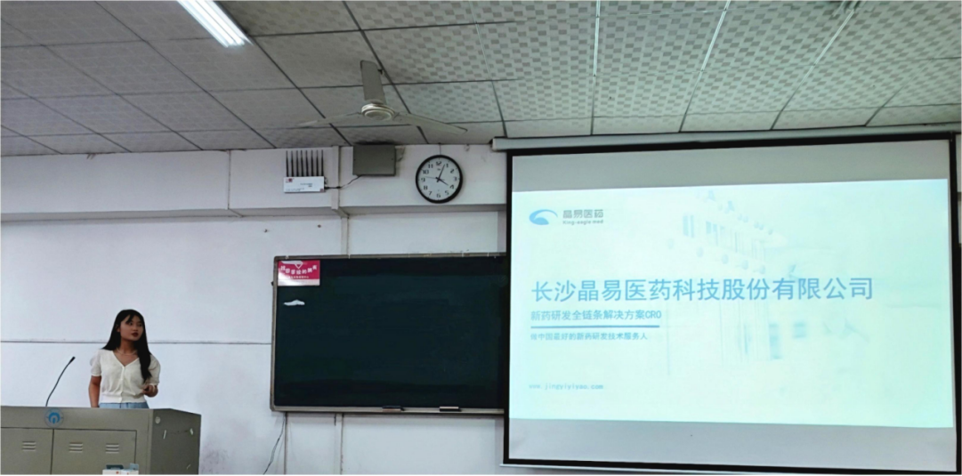 下午,长沙晶易医药科技股份有限公司于南华楼511展开宣讲会开始前,先由公司人力资源专员介绍了公司的成立背景,规模,研究方向,以及取得的诸多成就等,让同学们对公司有了更加深入的了解。随后,她又介绍了目前实习的一些职位和实习的培训亮点、课程体系等,让同学们对岗位需求有了了解。最后,她向同学们介绍了工作的环境和薪酬待遇。同学们积极倾听,在答疑环节与招聘负责人积极互动,得到了耐心的解答。