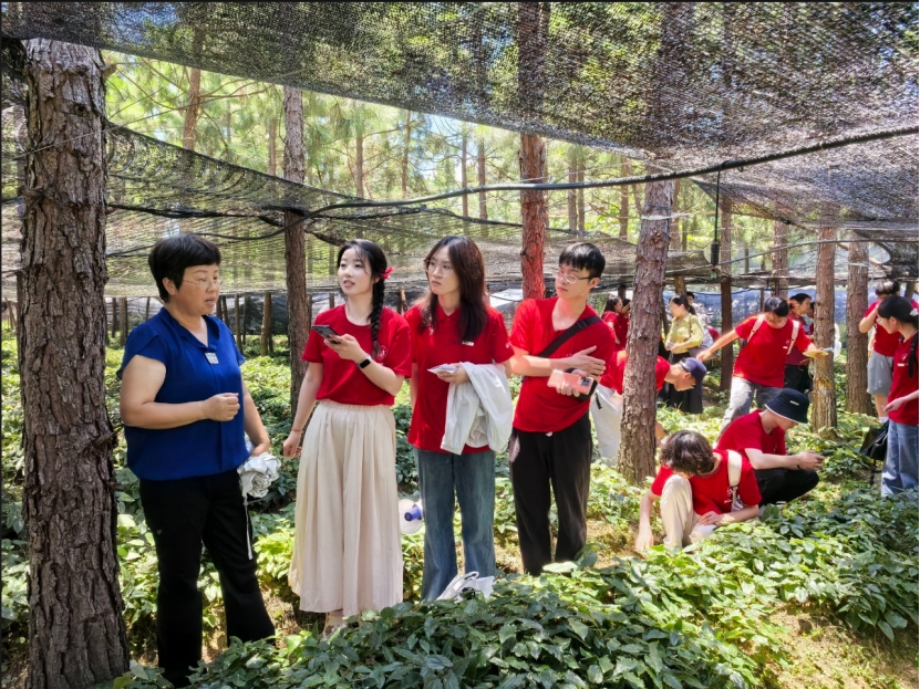 在虎形村千亩淫羊藿种植基地,“湘村药匠”实践团的员工们正弓着腰除草。“叶片带刺是天然的防虫屏障吗?”“林下套种的淫羊藿,皂苷含量能超药典标准5-8倍,具体怎么实现的?”员工们的问题一个接一个,直戳产业核心。种植带头人、国富生物科技总经理朱春燕介绍:“我们坚持生态种植,不用除草剂、只施有机肥,模拟野生环境。但品种优化、深加工技术还存在短板,急需技术支持。”3044永利集团经理王震实地考察后,针对产业需求与朱春燕交流探讨。“我们有药学学科优势,可以在有效成分提取、功能性产品研发等方面提供技术支持,助力‘小草经济’升级为‘大产业’。”