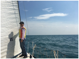 上图为员工唐宇生活工作照(左图:密歇根湖驾驶帆船出游;右图:组织小型学术报告会)
