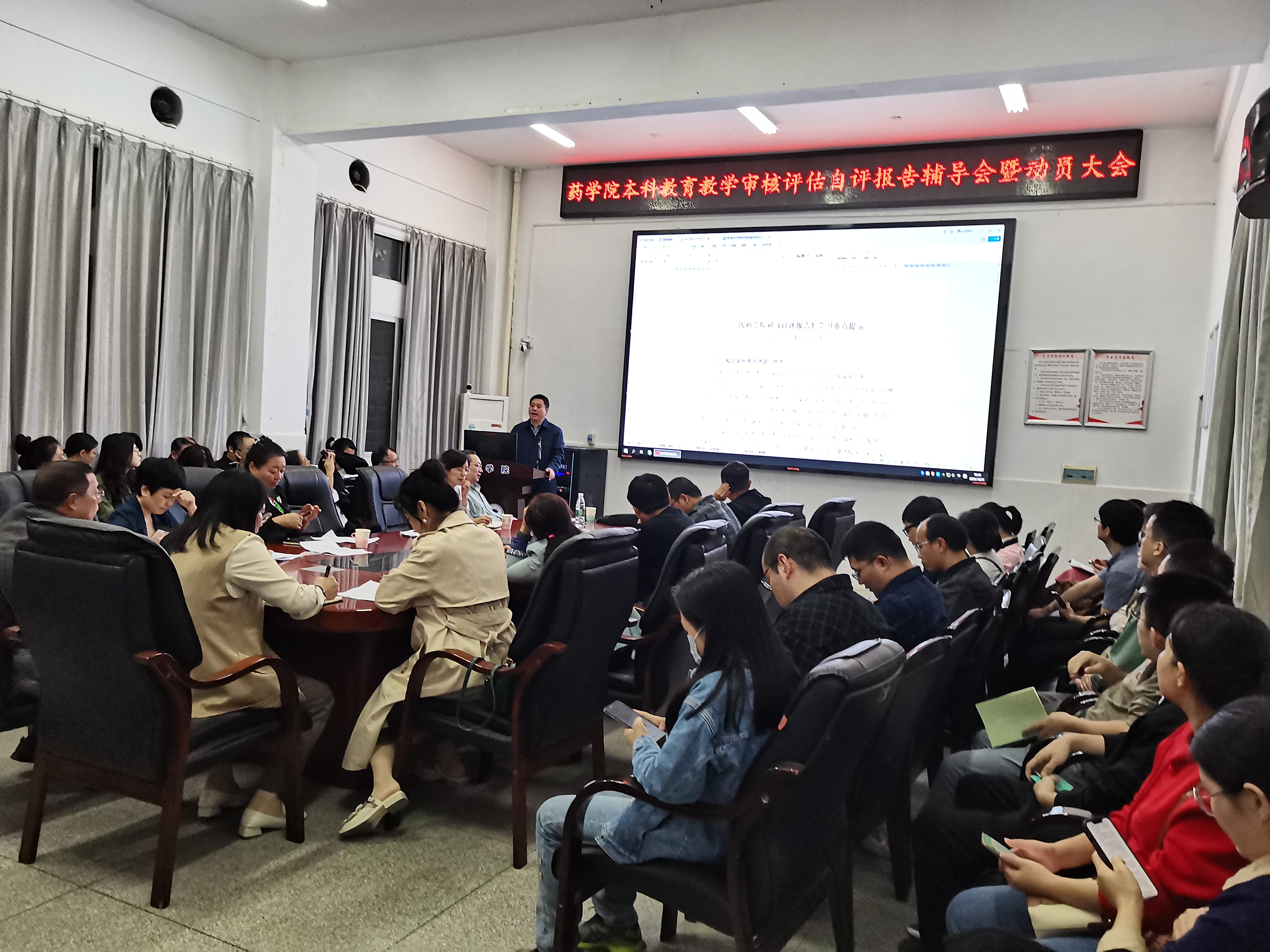 10月31日晚上7:30,我院在药学楼B101会议室召开新一轮本科公司产品审核评估自评报告辅导会暨动员大会。3044永利集团经理喻翠云、党委书记袁中华、副书记陈健平、副经理易岚、副经理王力立以及公司全体教职员工参加了此次动员大会,会议由公司党委书记袁中华主持。